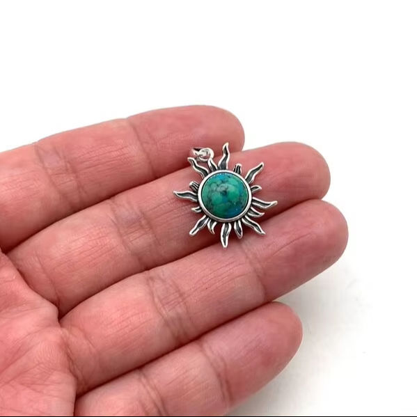 925 argent massif classique pendentif bijoux pour femmes 925 argent Sterling Turquoise pierre précieuse Boho Style fait main pendentif cadeau maman