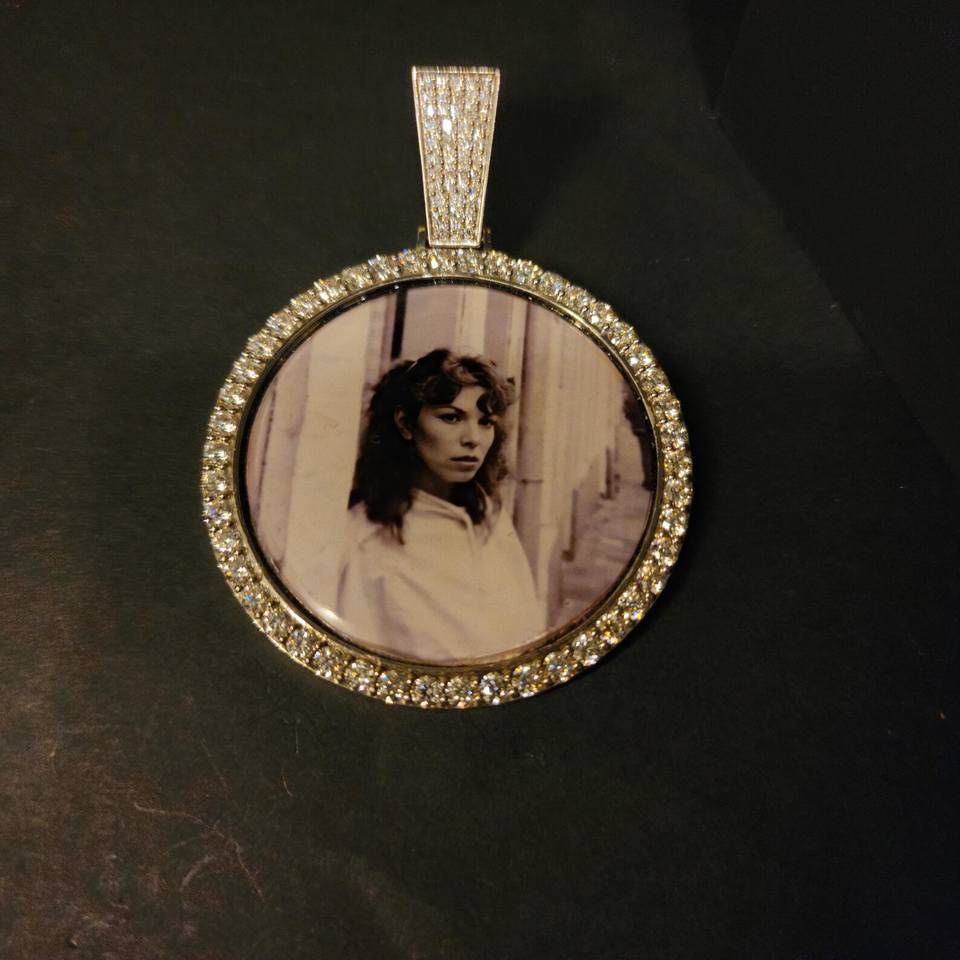 Pendentif photo personnalisé plaqué argent 925 avec halo de diamants de laboratoire de 7,5 carats, charme souvenir photo et micro-pavé de diamants