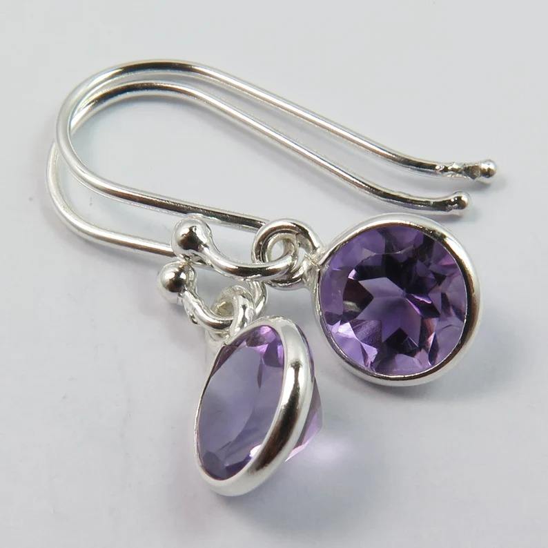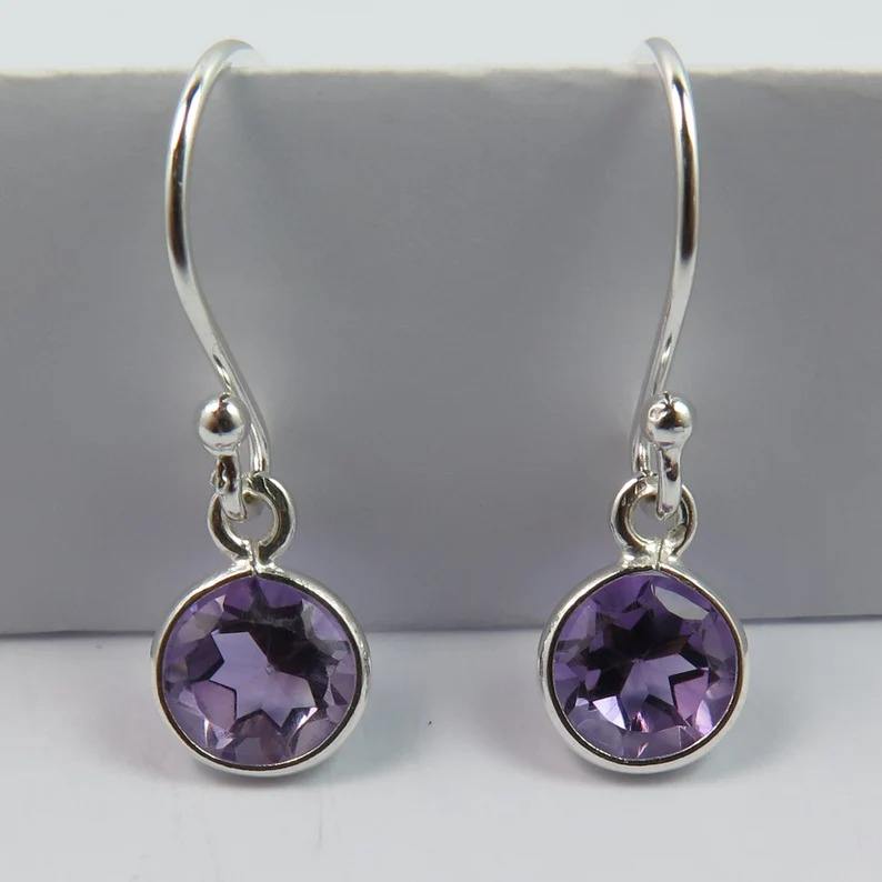 925 boucles d'oreilles pendantes en argent Sterling massif forme de pierres précieuses améthyste Design à la mode pour la fête tenue décontractée bijoux en argent pour femmes