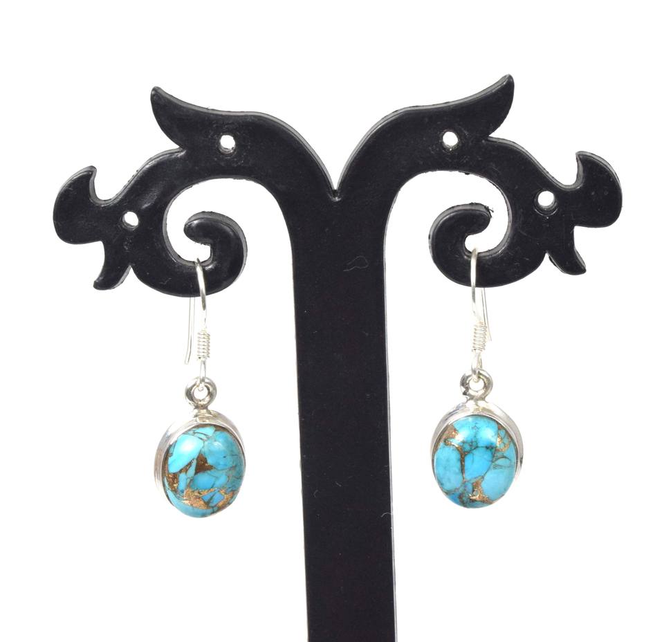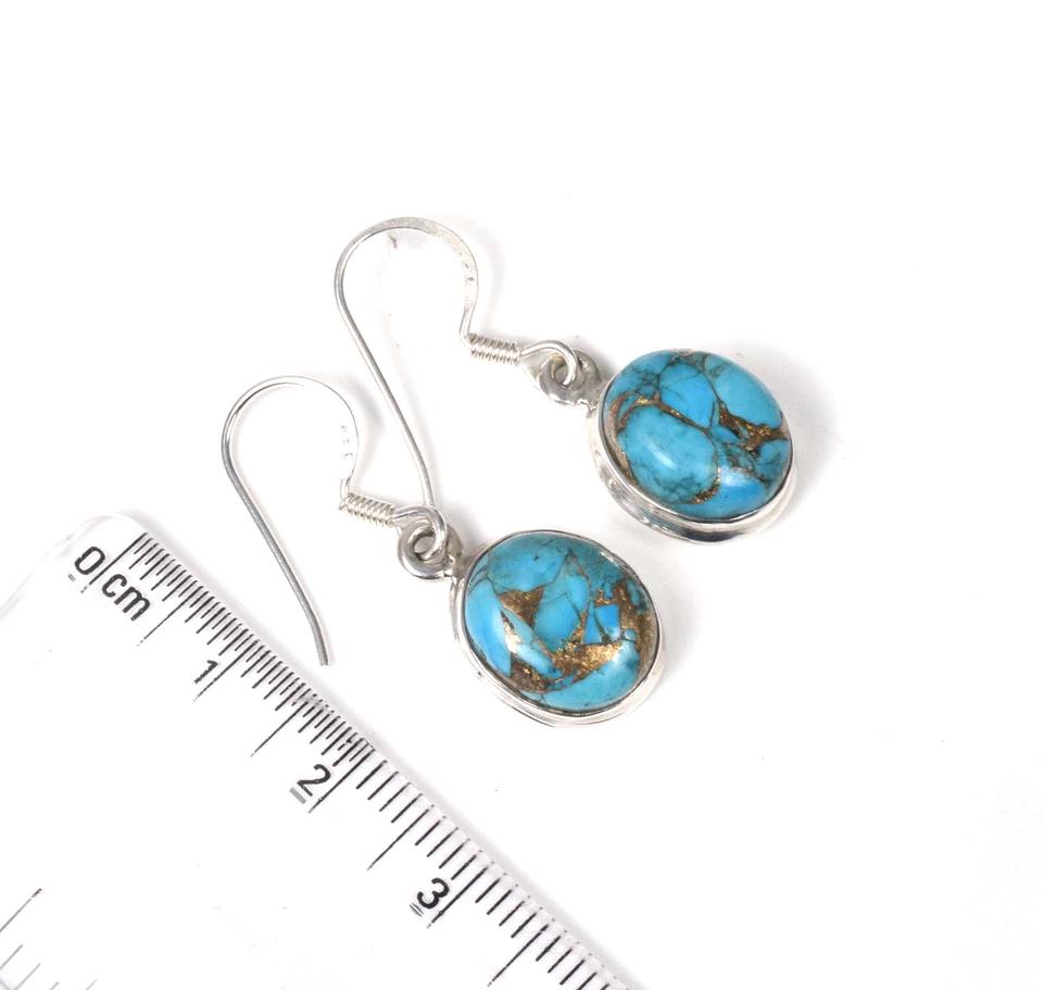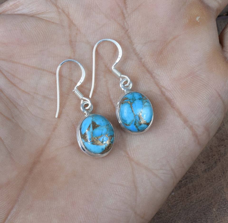 925 argent sterling massif décembre mois pierre de naissance crochet boucles d'oreilles bleu cuivre Turquoise lunette réglage boucles d'oreilles breloque