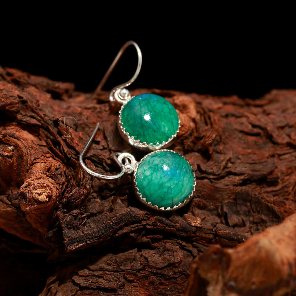 Product Name:925 Sterling Silver Green Moonstone Handmade Earrings