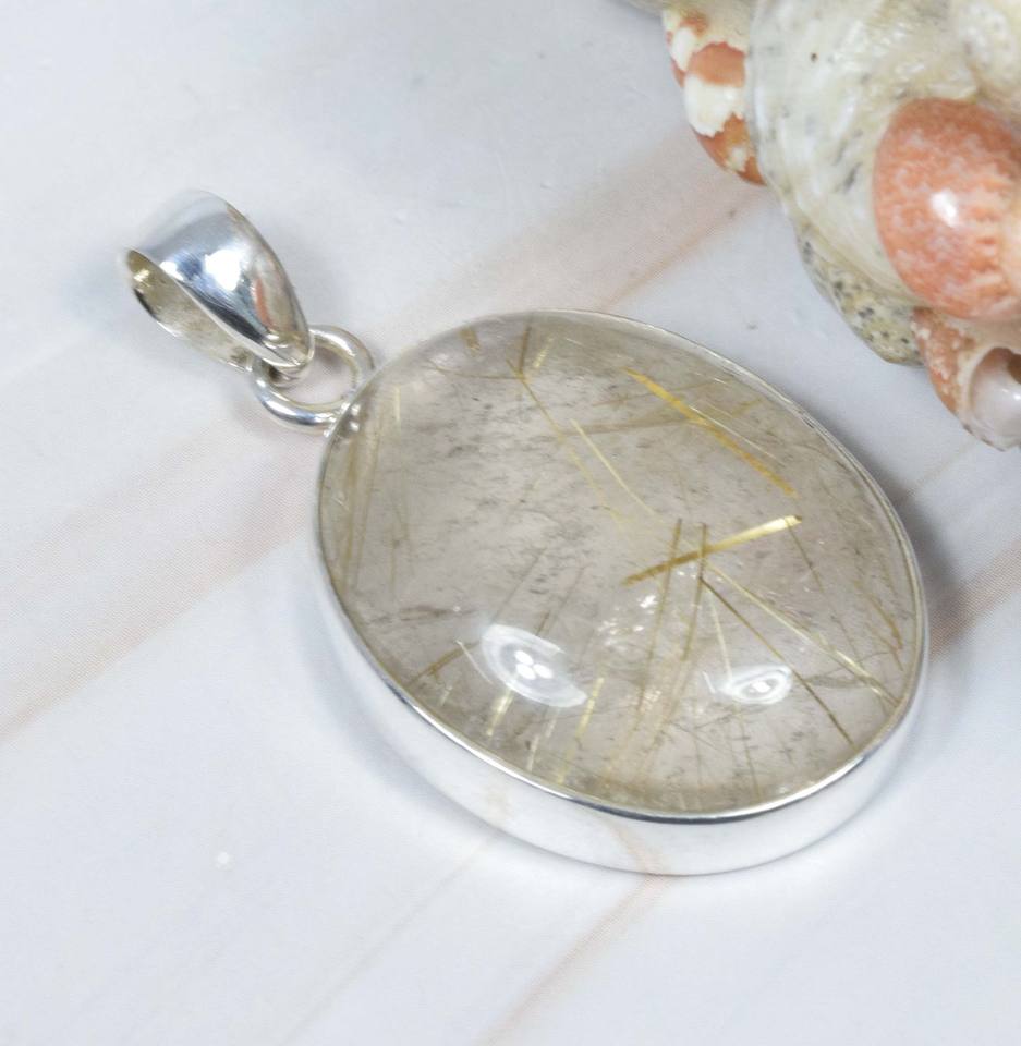 Pendentif fin en argent sterling massif 925 avec breloque de réglage de lunette élégante en rutile doré