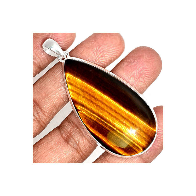 925 pendentif fin en argent Sterling massif fait à la main naturel oeil de tigre pierres précieuses réglage de lunette ODM pierre de naissance OEM bijoux en gros