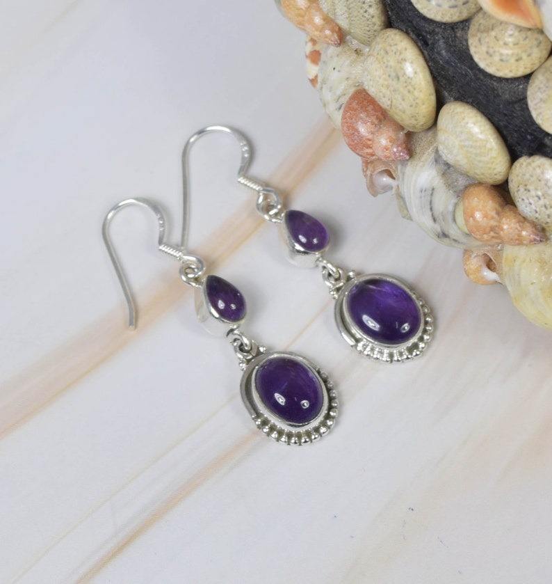 925 Solid Sterling Silver Girls Earrings Silver Jewellery Earrings for Women Dangle Earrings High Quality Amethyst Gemstone