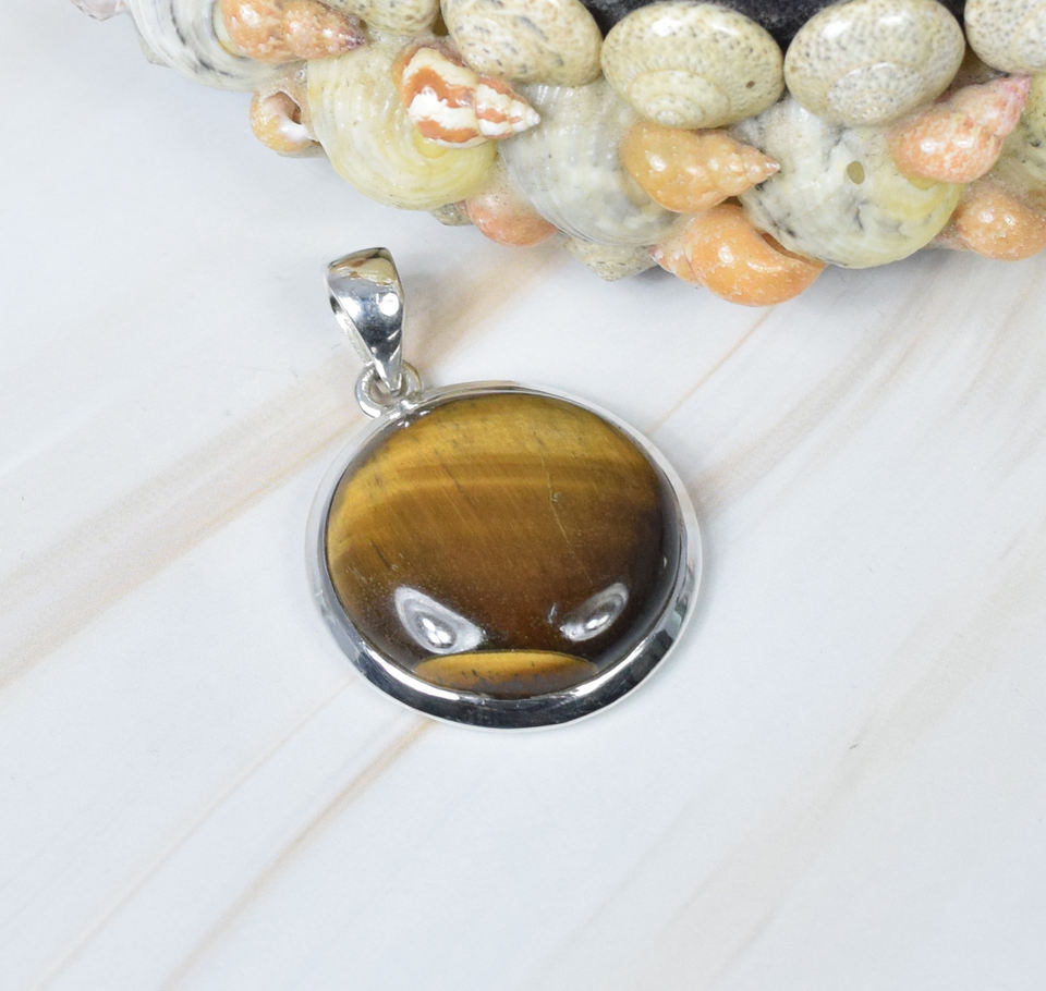 925 Solid Sterling Silver June Birthstone Tiger Eye Pendant & Charm with Bezel Setting Fine Jewelry
