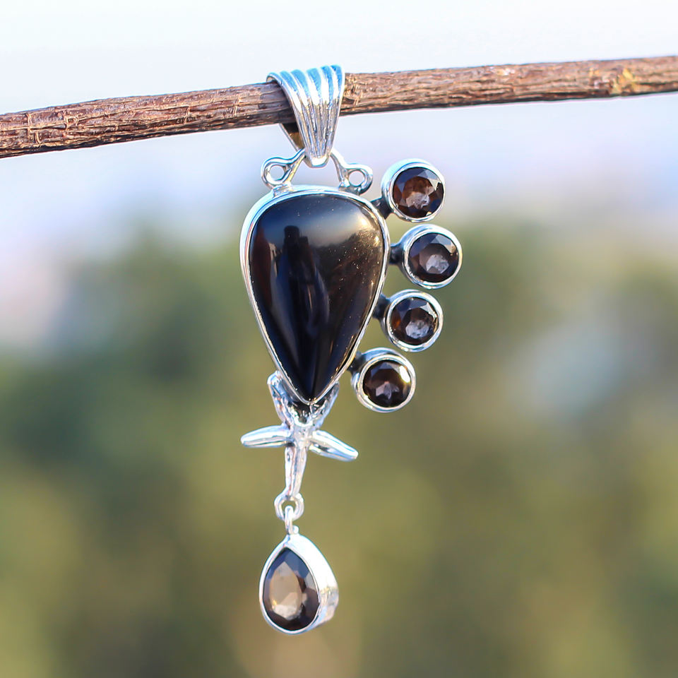 Mot-clé:Onyx noir pendentif pierres précieuses en argent massif bijoux faits à la main