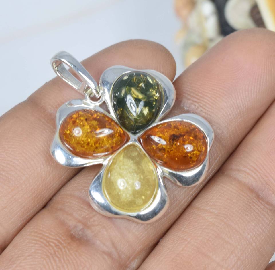 Pendentif en forme de poire en ambre baltique naturel en argent sterling massif 925