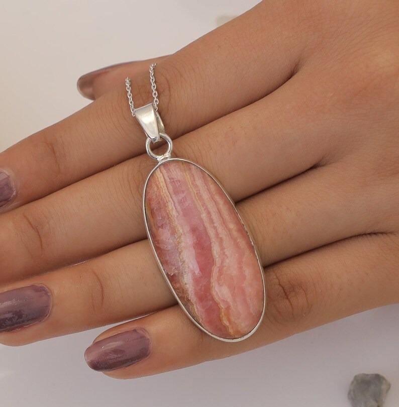 925 bijoux estampillés couleur rose tendance cadeau de mariage 925 en argent Sterling fait à la main pierre précieuse Rhodo Chrosite Spinner pendentif