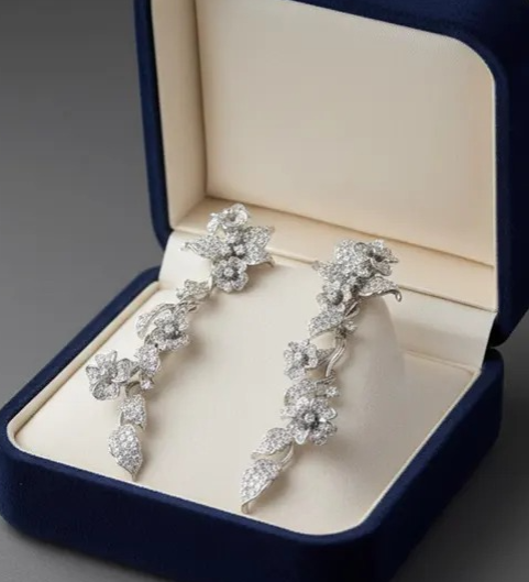 Product Name:925 Stealing Elegant Flower Motif Long Earring