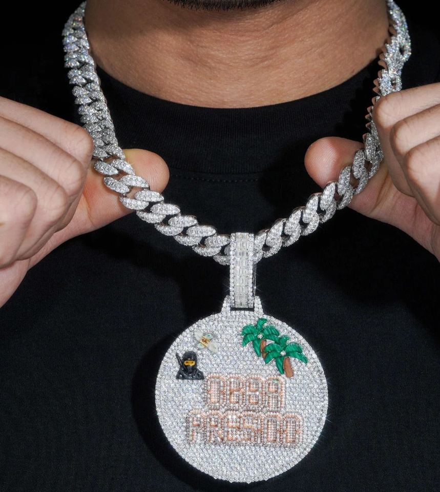 5 volant ruban forme ronde Moissanite diamant pendentif