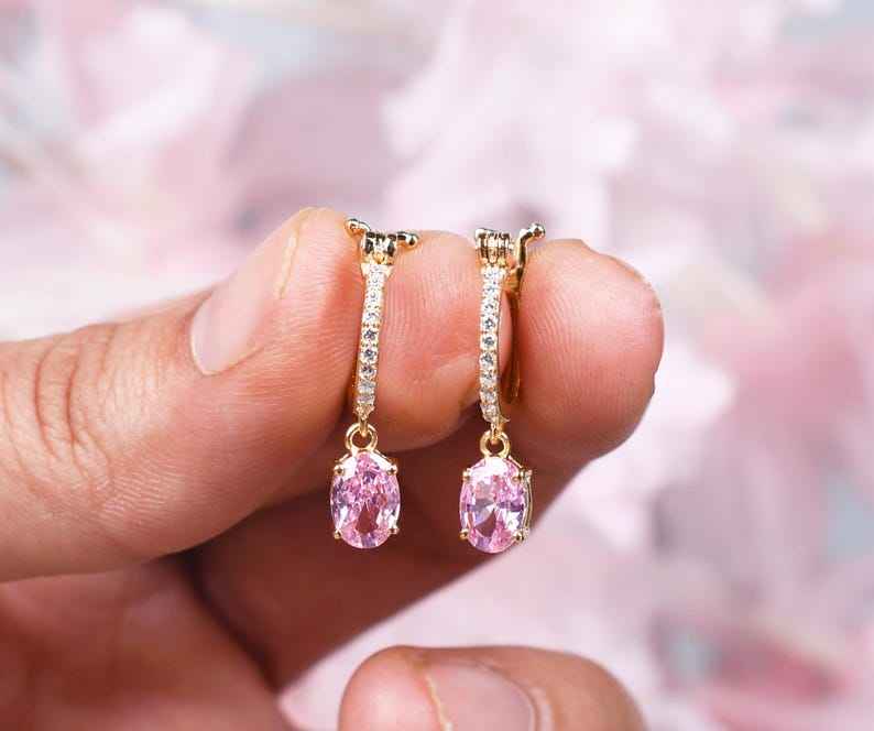 Keyword:Pink Sapphire Stud Earrings With Sparkling Pink sapphire Stones