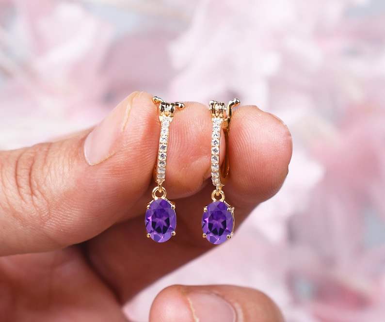 Keyword:Amethyst Stud Earrings With Sparkling Amethyst Stones