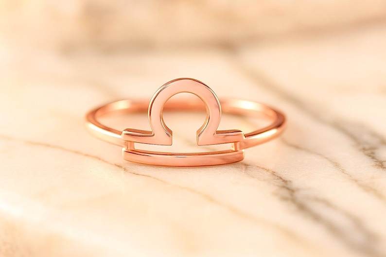 925 Sterling Silver 14k Gold Rose Gold Plated Christian Libra Horoscope Ring Handmade Zodiac Sign Adjustable Band Minimalist