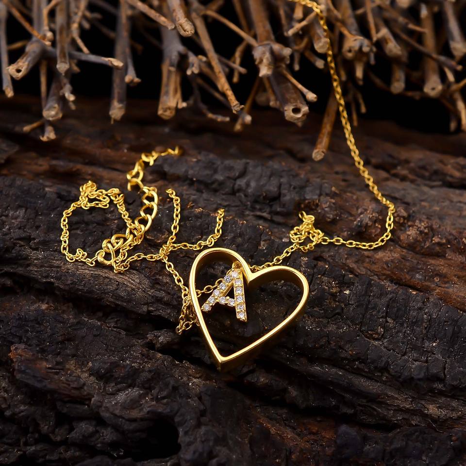 925 argent Sterling 18K or Vermeil cubique Zircon pierres précieuses Micro pavé collier Alphabet classique forme de coeur pour la fête de mariage