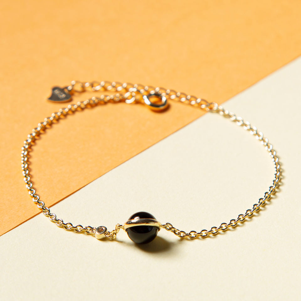 Argent sterling 925 véritable or/agate noire