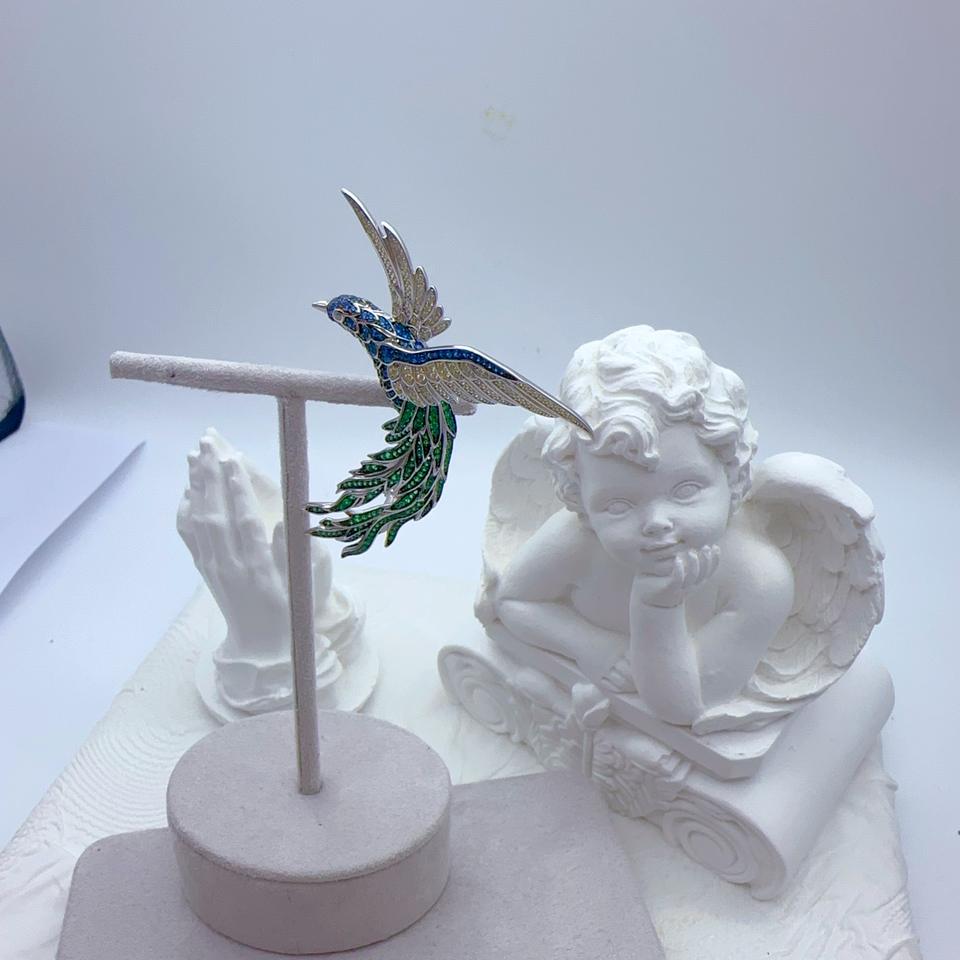 Broche Phénix en Argent Sterling 925, Émail Bleu-Vert Dégradé et Pavé de Zirconium Cubique, Bijou Oriental Mythique et Imposant