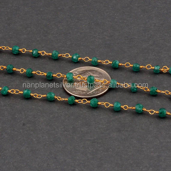 925 chaîne de perles en argent Sterling teint émeraude pierre précieuse unisexe lunette réglage bijoux pour mariage fête fiançailles cadeau pour enfants