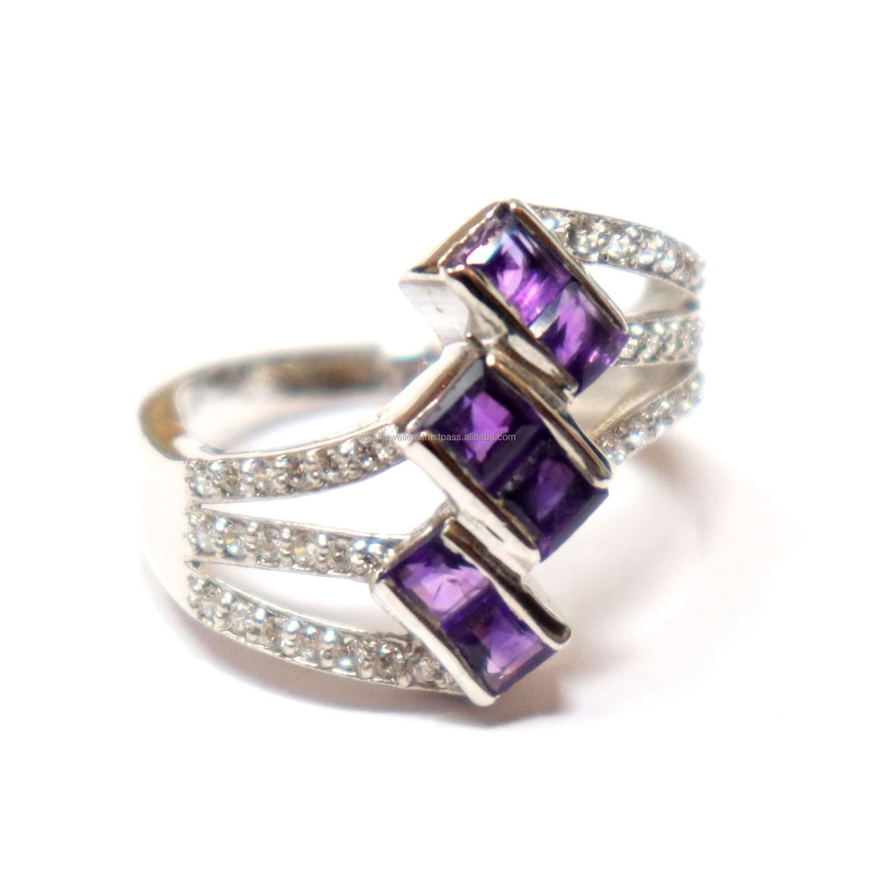 925 argent Sterling belle bague de créateur faite à la main améthyste naturelle CZ pierre précieuse mode classique bijoux uniques pour la fête asiatique