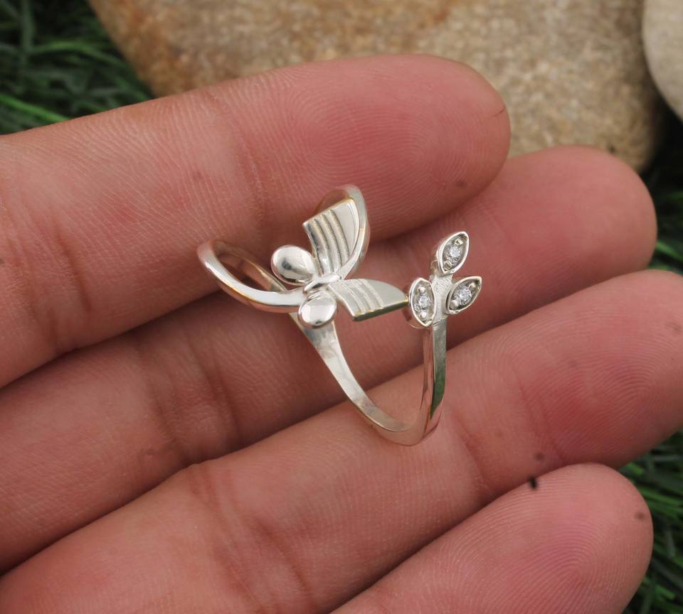 Bague de mariage/fête classique bohème délicate et minimaliste en argent sterling 925 avec sertissage clos et zircon cubique taille brillant, faite à la main