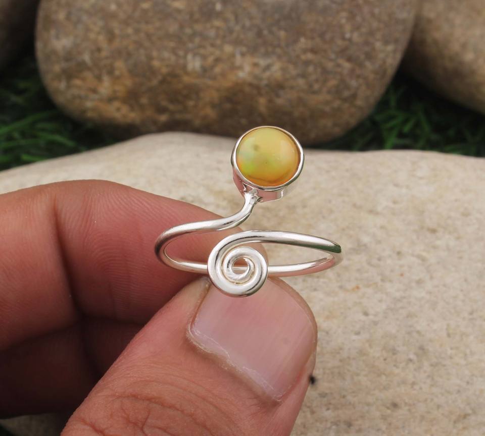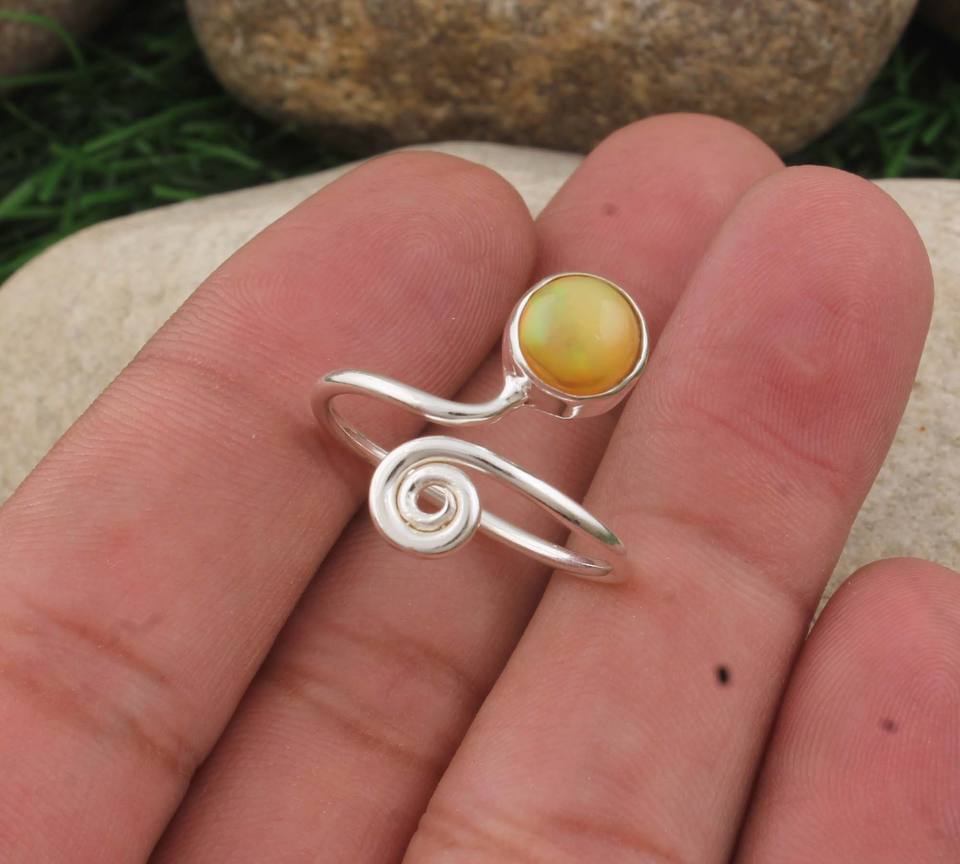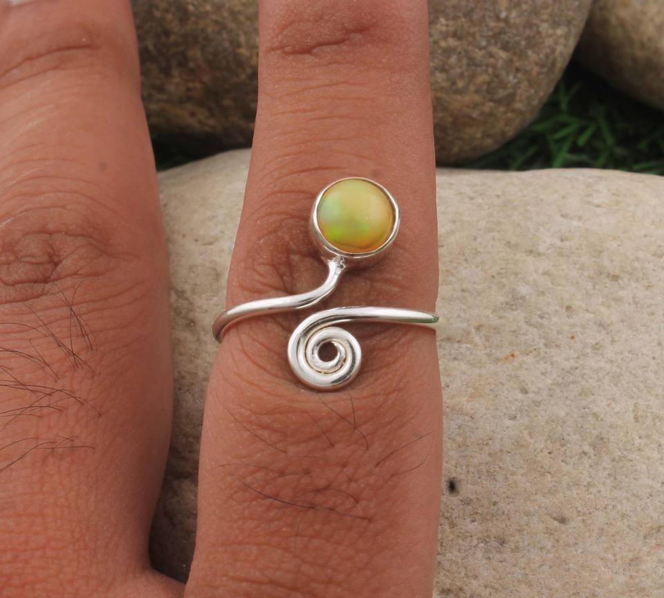 Bague Solitaire Classique Bohème Faite à la Main en Argent Sterling 925 avec Opale Ronde Sertie en Bezel, Certifiée Jaipur, Unisexe, pour Mariage