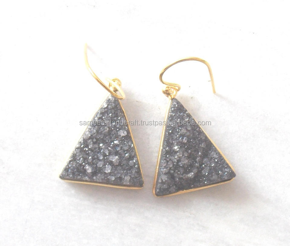 Jewelry Name:Natural Black Druzy Gold Plated Hanging Hoop Earring
