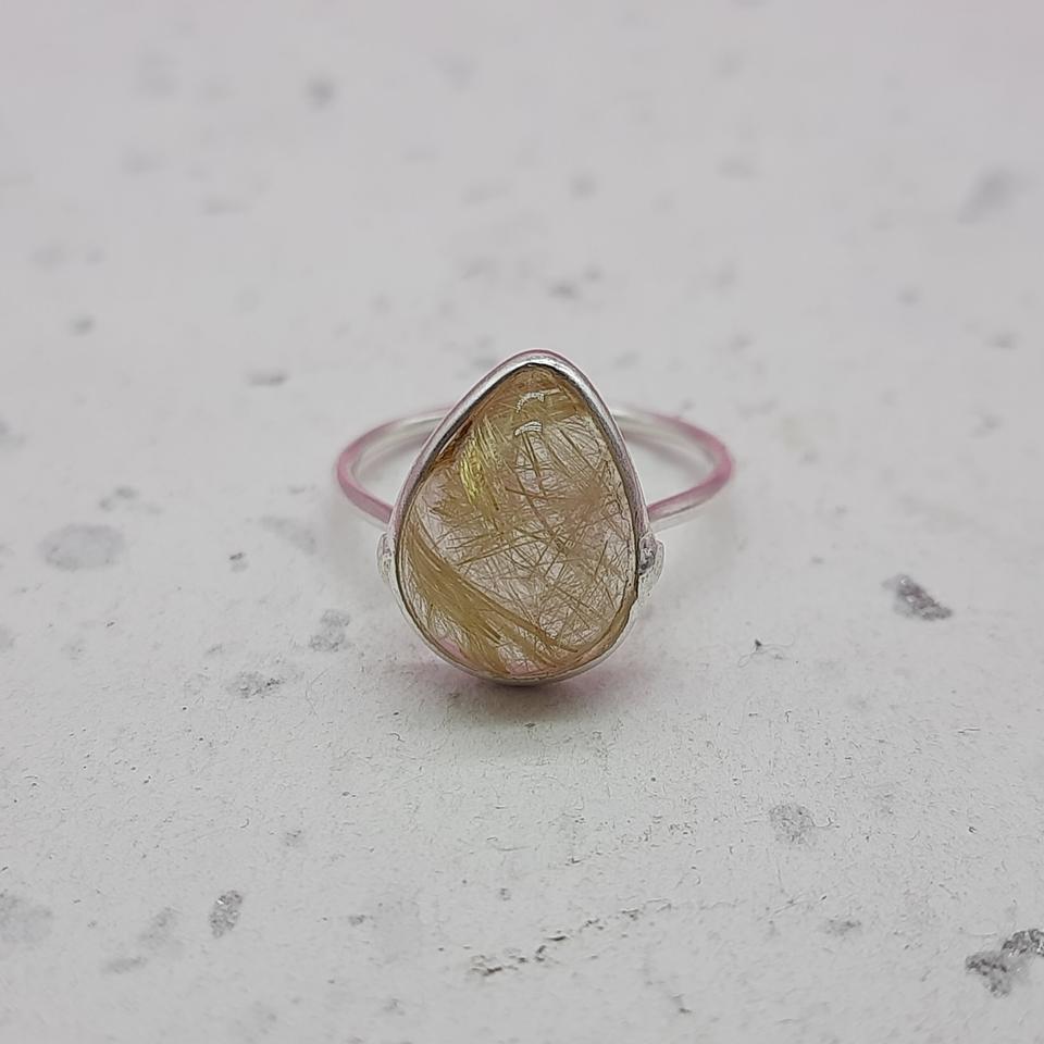 925 Sterling Silver Boho Band Anneau Naturel Rutile Quartz Pierres Précieuses Lunette Artisan Fabriqué Diamant De Noce Bijoux En Gros