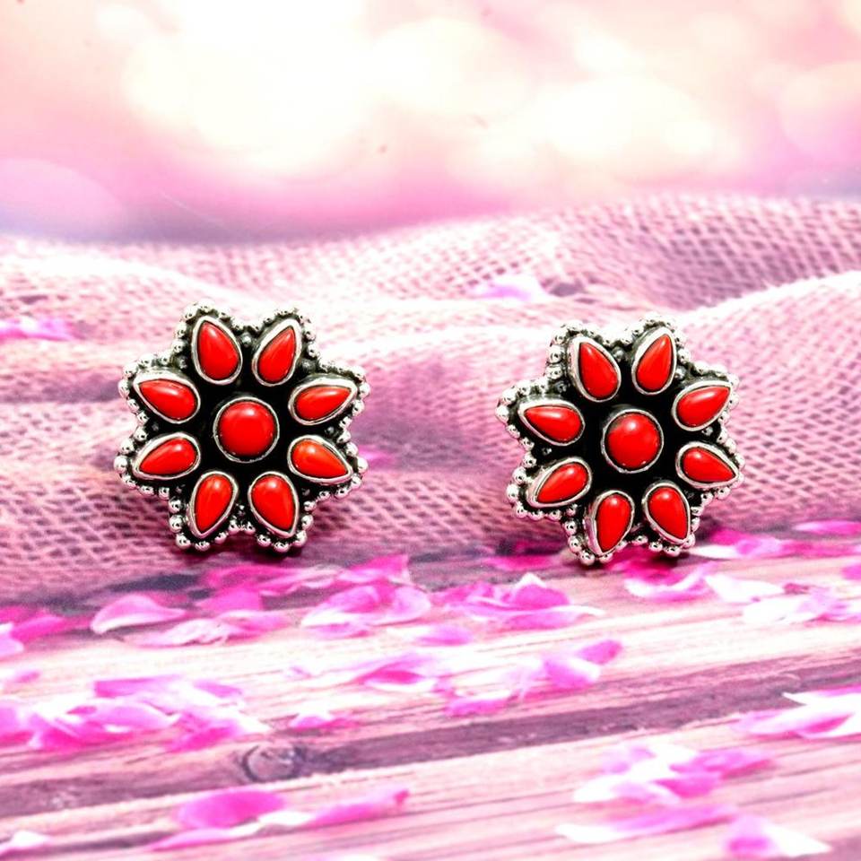 925 Sterling Silver Boho Stud Earring Natural Red Coral with Rose Gold Finish Wedding or Anniversary Gift for Her