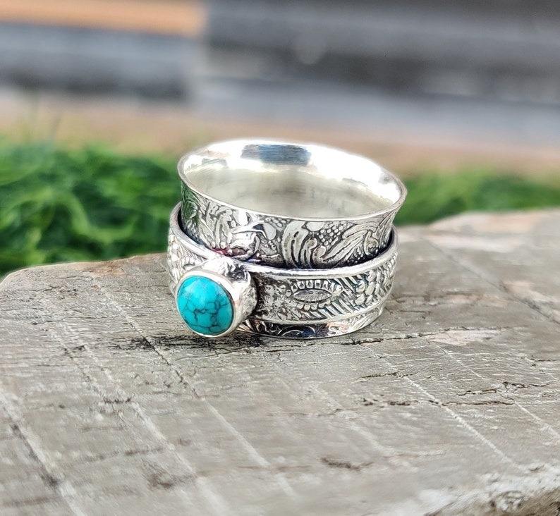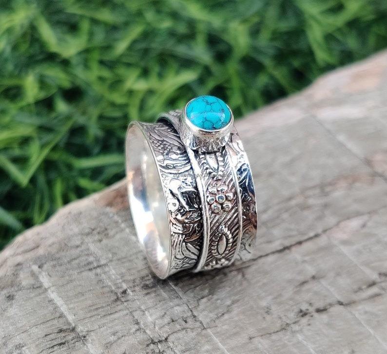 Bague en argent sterling 925 de style bohème avec pierres précieuses turquoises bijoux faits à la main pour femmes cadeau de mariage ou tenue de fête pour épouses