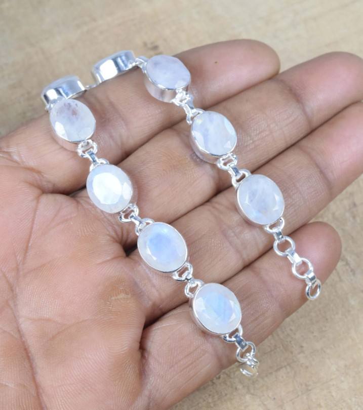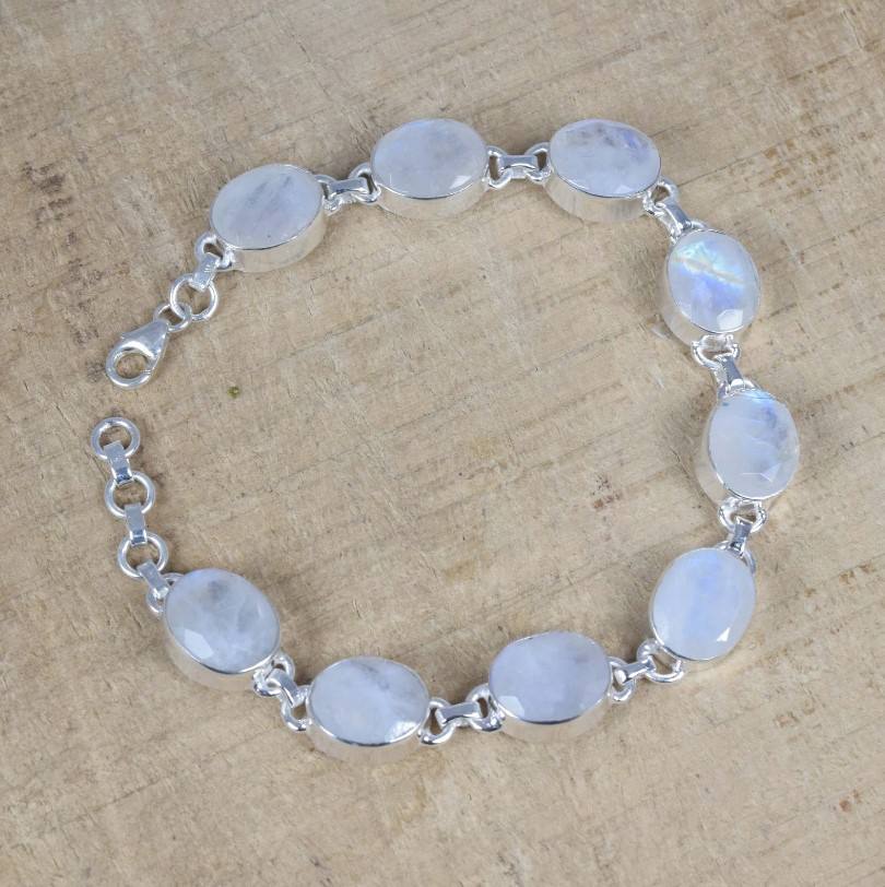 Product Name:Natural Faceted Rainbow Moonstone Gemstone silver bracelet