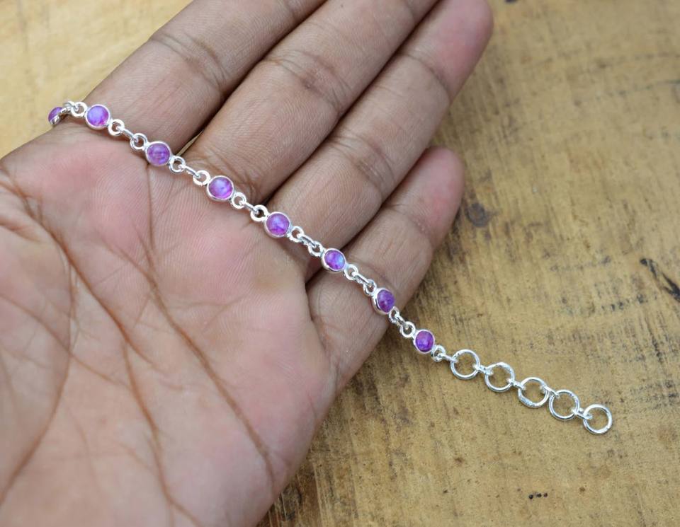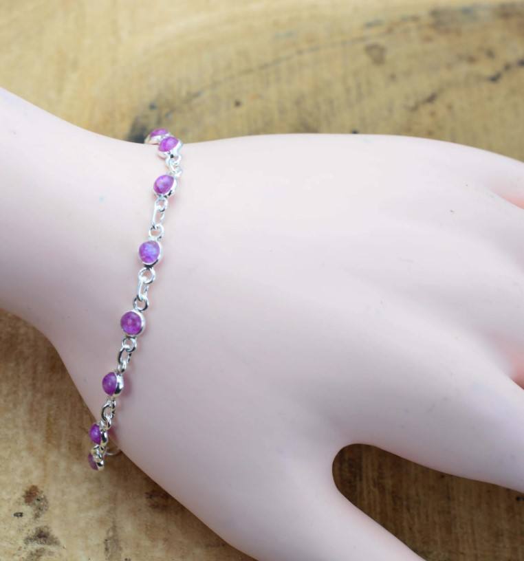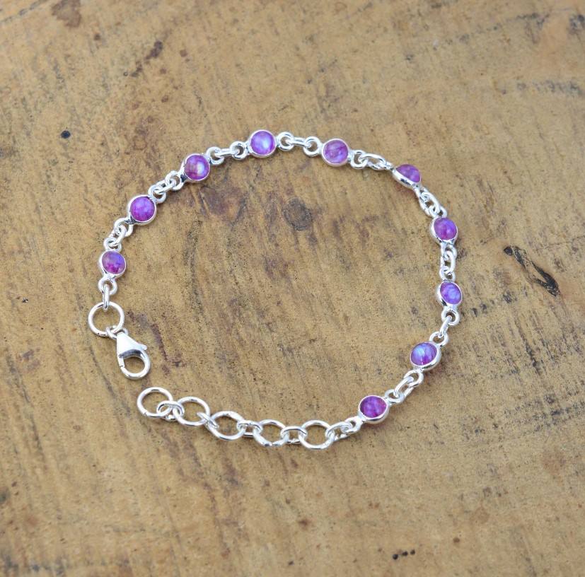 Product Name:Natural Pink Rainbow Moonstone Gemstone silver bracelet