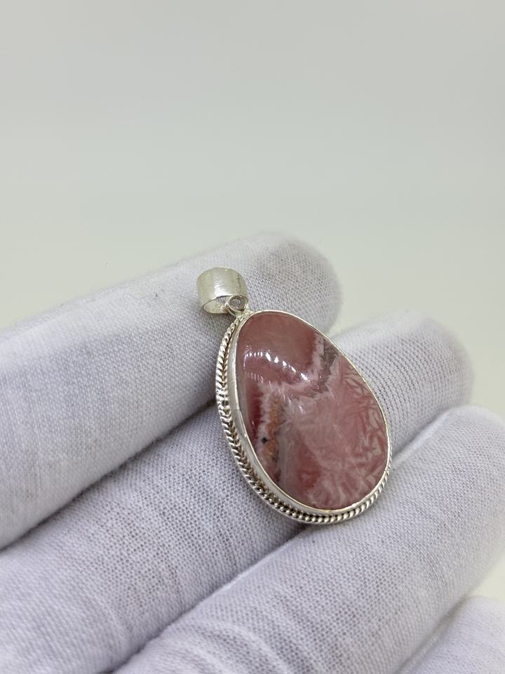 Pendentif en argent sterling 925 avec cabochon de rhodochrosite de 3 cm, serti en bélière, style ethnique, fabrication de bijoux pour femmes, vente en gros