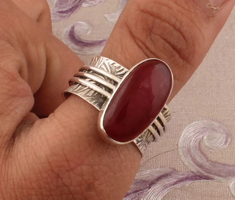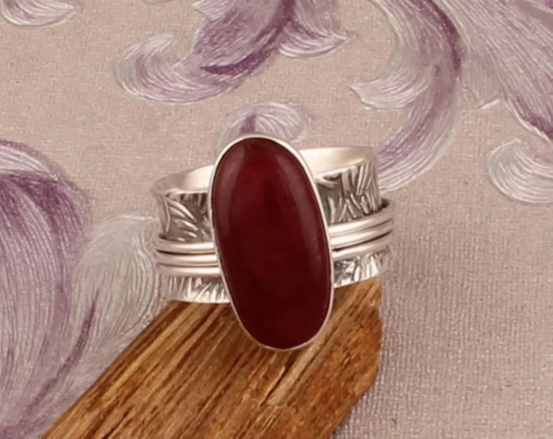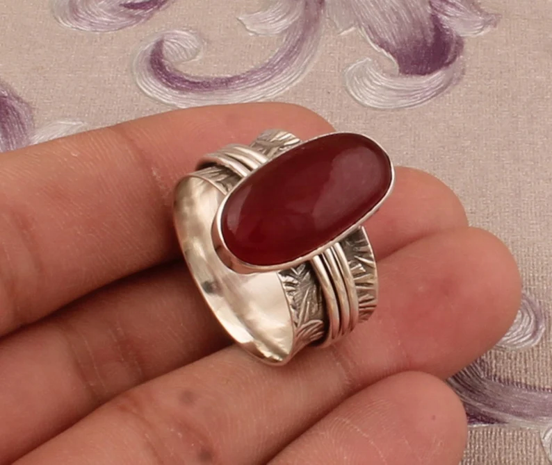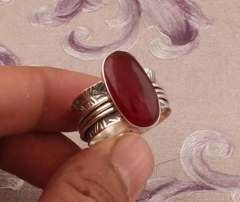 Bague Spinner texturée sculptée en argent sterling 925 fabriquée à la main Spinner de pouce de pierre précieuse de mariage conçue par le Christ