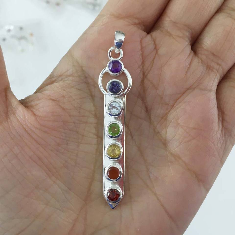 Pendentif Chakra en argent sterling 925 Multi pierres précieuses bijoux de haute qualité faits à la main conceptions populaires avec perle de diamant