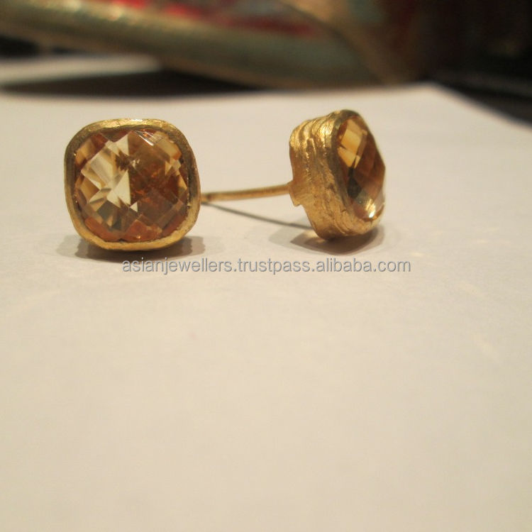 925 Sterling Silver Citrine Quartz Gemstone Boucles d'oreilles à la main pour cadeau de fête de mariage de fiançailles