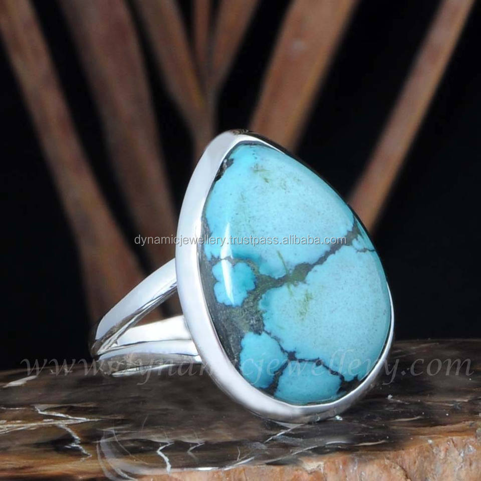 925 Sterling Silver Classic Ladies Rings avec Turquoise Pear Cab Gemstone Fine Bezel Setting Wedding Party Jewelry Bulk Sale