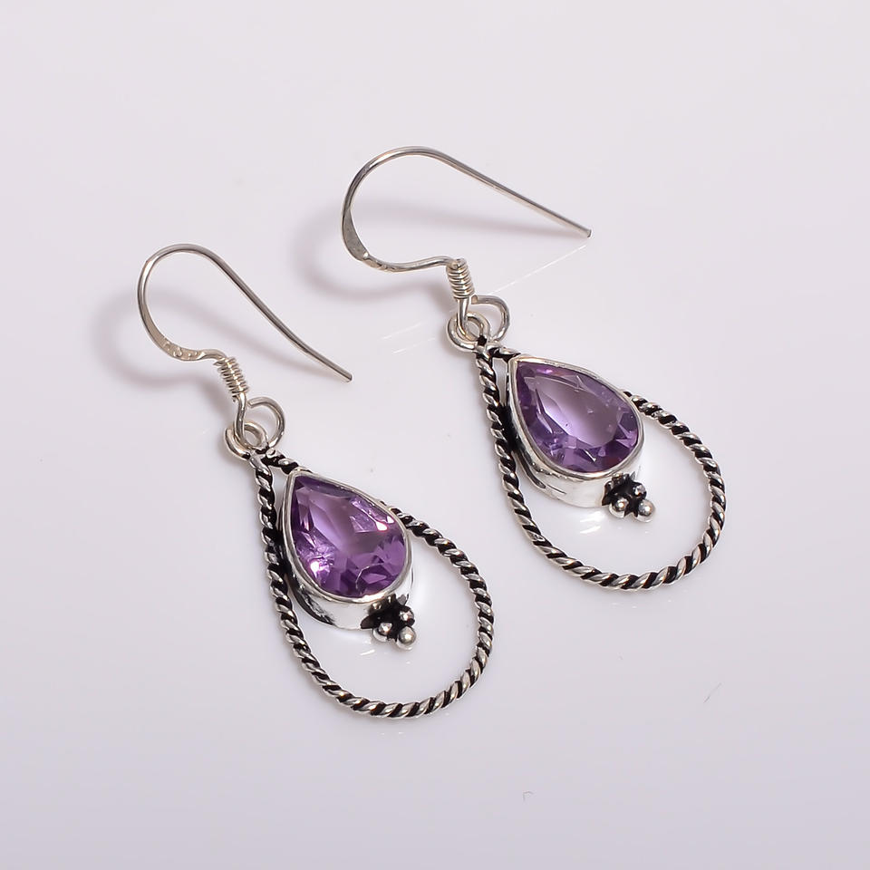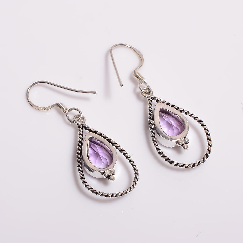 Boucles d'oreilles pendantes en argent sterling 925 de style classique Bijoux fins de qualité supérieure élégants avec pierre précieuse améthyste