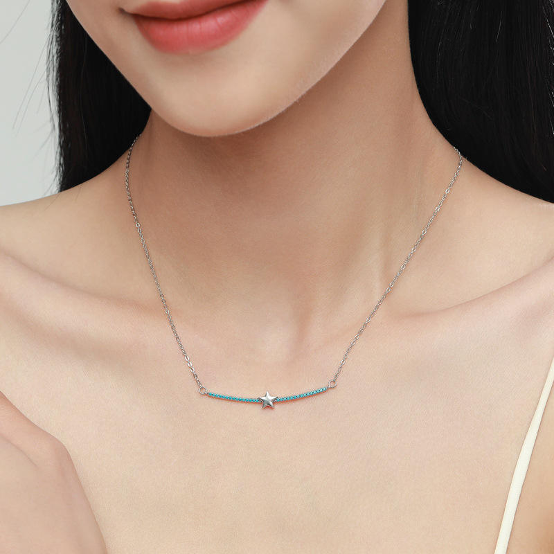 Ensemble de bijoux délicats en argent sterling 925 avec turquoise synthétique, comprenant un collier étoile, des boucles d'oreilles créoles et une bague, 3 pièces pour femmes