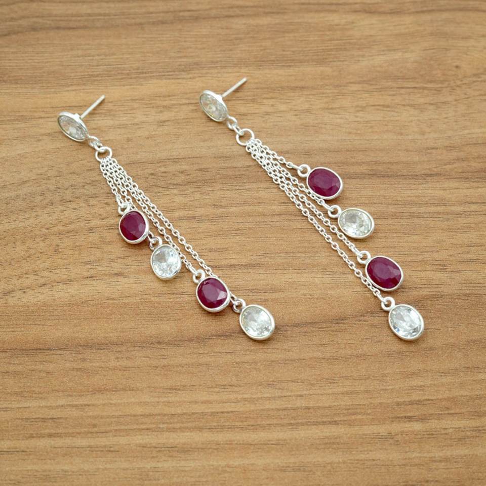 925 Sterling Silver Crystal Earrings with Cubic Zirconia and Ruby Bezel Handmade Multi Gemstone Jewelry E0682-GS for Gift Item