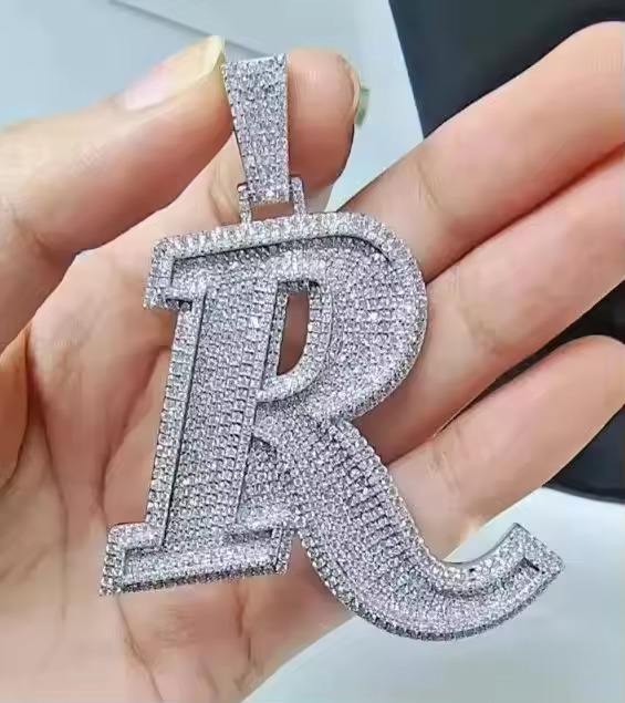 Pendentif personnalisé en argent sterling 925 avec moissanite ronde de 3 carats plaqué or pour les fêtes