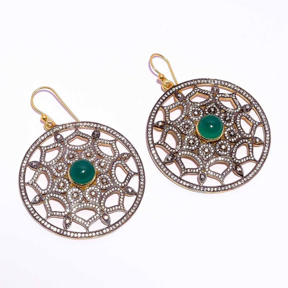 925 boucles d'oreilles pendantes en argent Sterling faites à la main émeraude naturelle et Zircon bijoux fins pour cadeau d'anniversaire de mariage pour elle