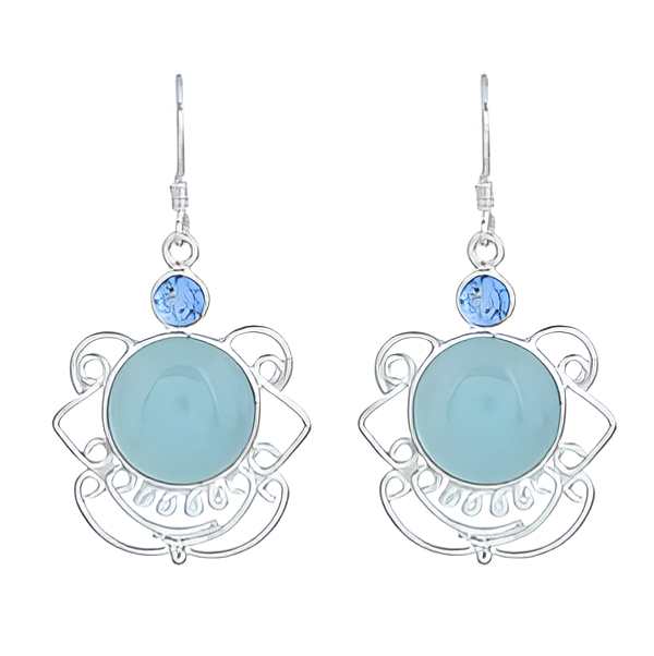 Boucles d'oreilles en argent sterling 925 avec topaze en calcédoine Boucle d'oreille à la mode de forme ronde pour les fêtes de mariage et les cadeaux.