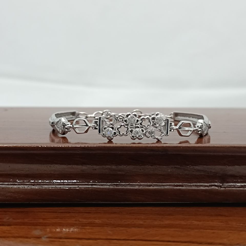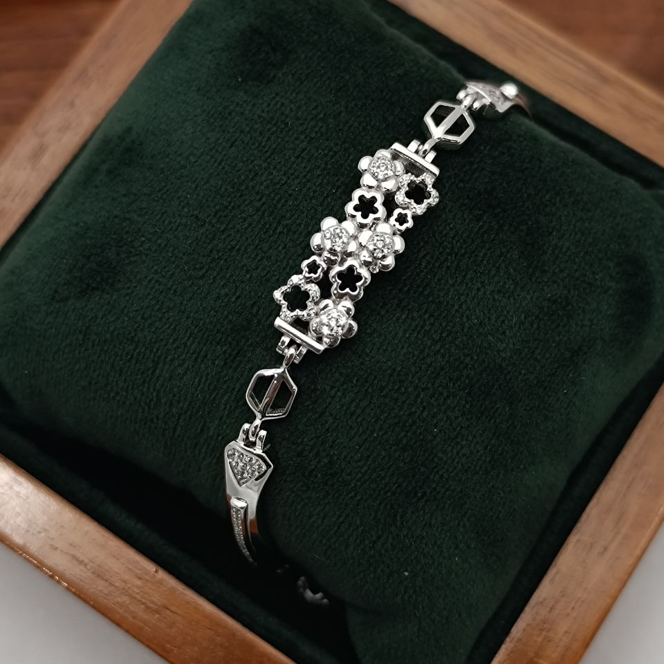 Bracelet élégant en argent sterling 925 avec motif floral trèfle serti de diamants, bijou tendance pour femme