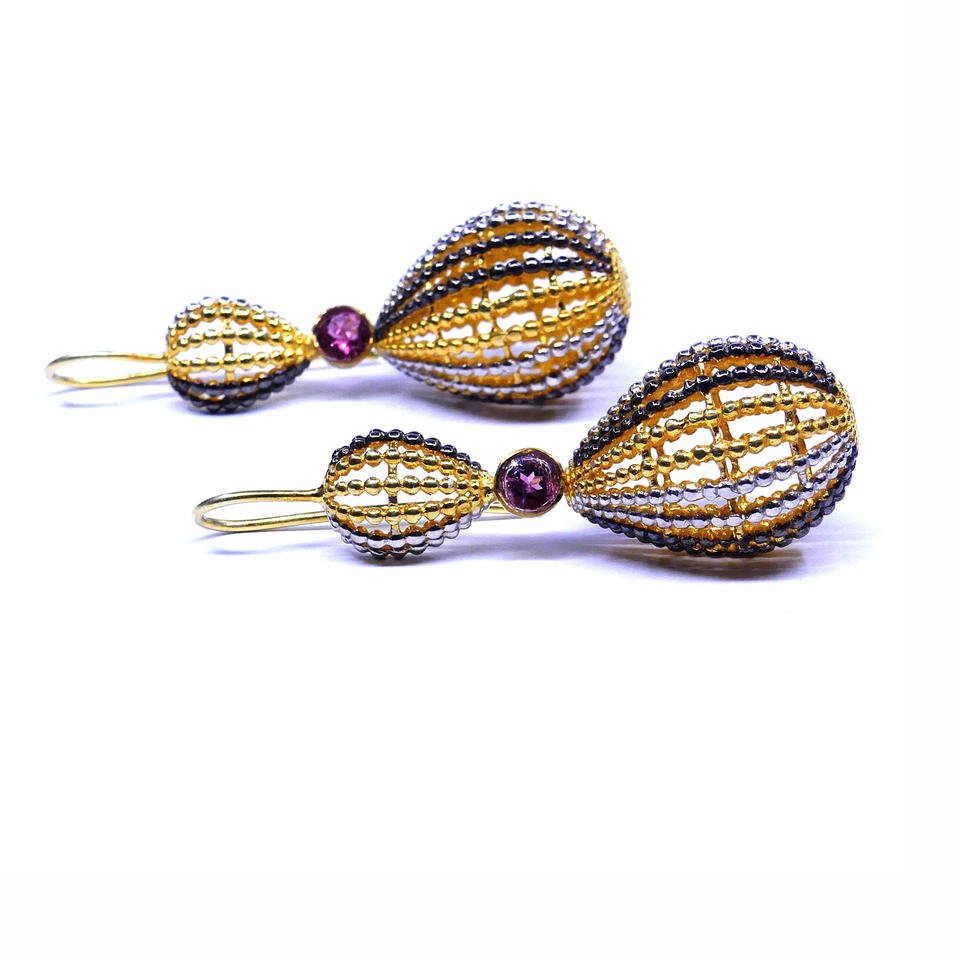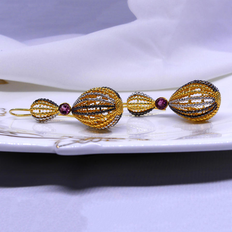 Ensemble de boucles d'oreilles Gemvanity en argent sterling 925 pour femmes, plaqué or, pierres précieuses tourmaline classiques, style vintage, charme chrétien