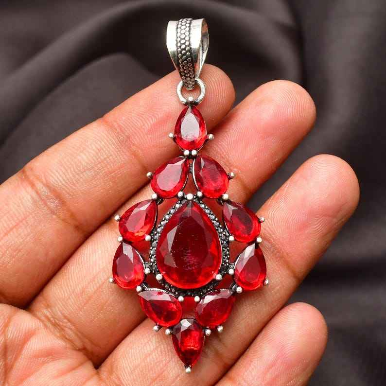 925 Sterling Silver Elegant Teardrop Pendant Necklace Red Garnet Stylish Fashion Jewelry for Weddings Engagements Parties