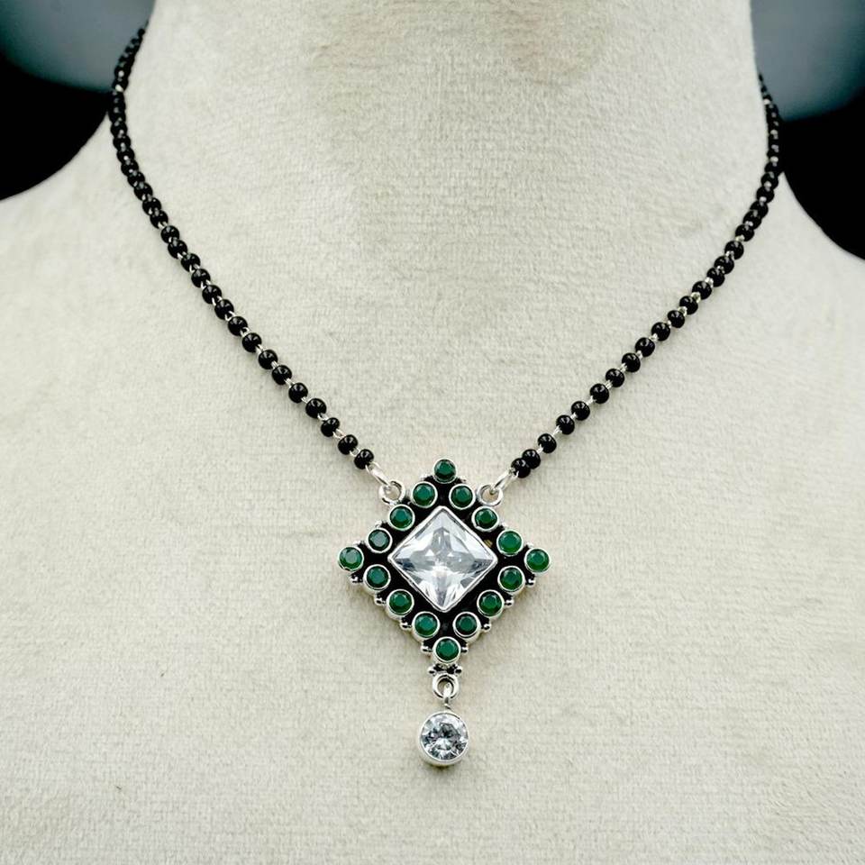 925 Sterling Silver Emerald Necklace with Aventurine Pendant Traditional Indian Style Mangalsutra Fine Beaded Chain Gift