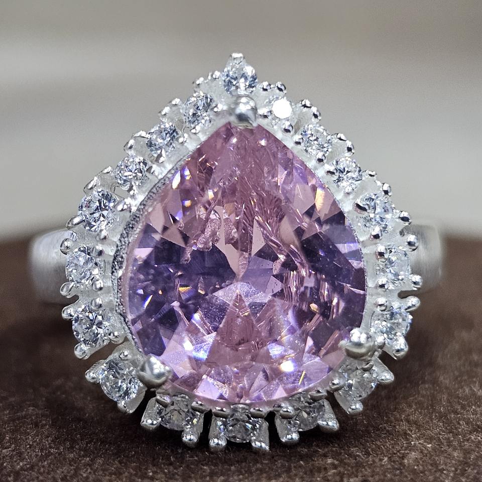 Argent Sterling 925 Excellente Qualité Designer Fait Main Dernière Bague À La Mode Avec Pierre Précieuse Zircon Cubique Rose En Forme De Larme
