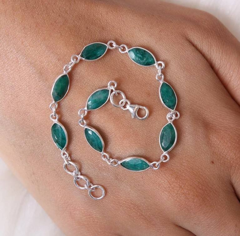 Product Name:Natural Blue Apatite Gemstone silver bracelet