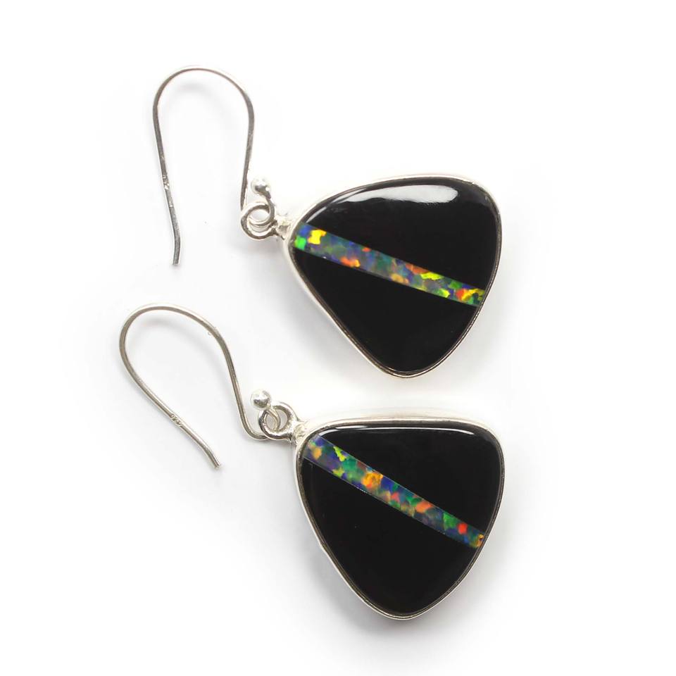 Ensemble de boucles d'oreilles en forme de fantaisie en argent sterling 925 Opale synthétique Onyx noir Mariages Fêtes Cadeaux Bello Opale Gemstone Diamond Main