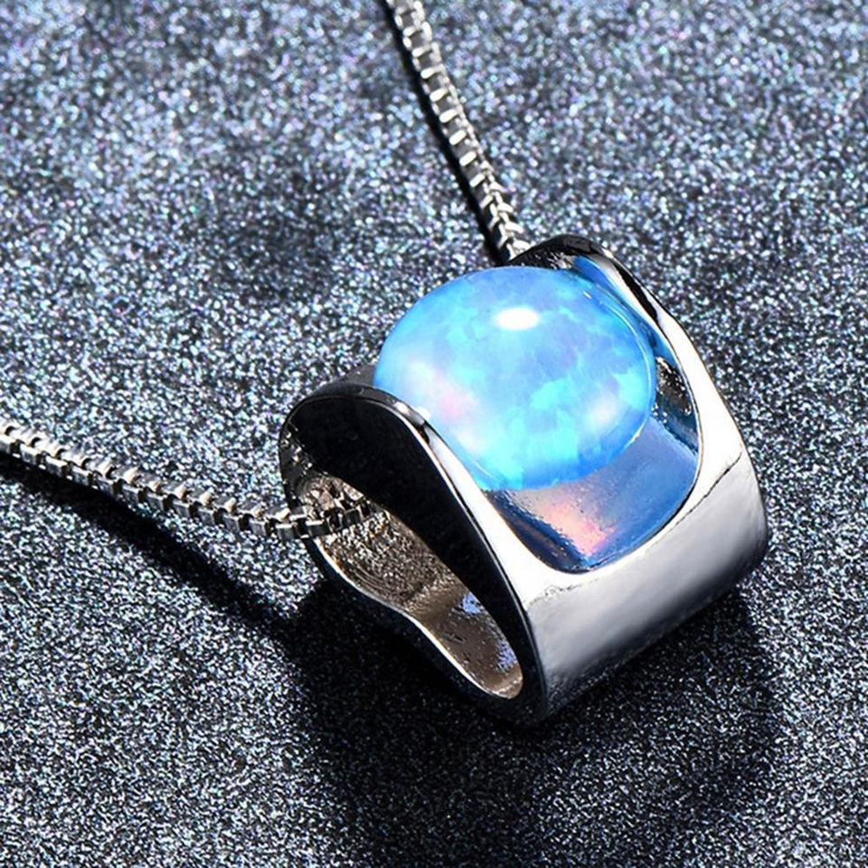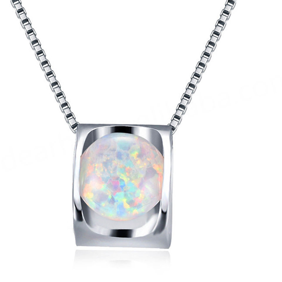 Colliers tendance en argent sterling 925 avec pendentif géométrique en pierre ronde, opale de feu blanche pour femmes