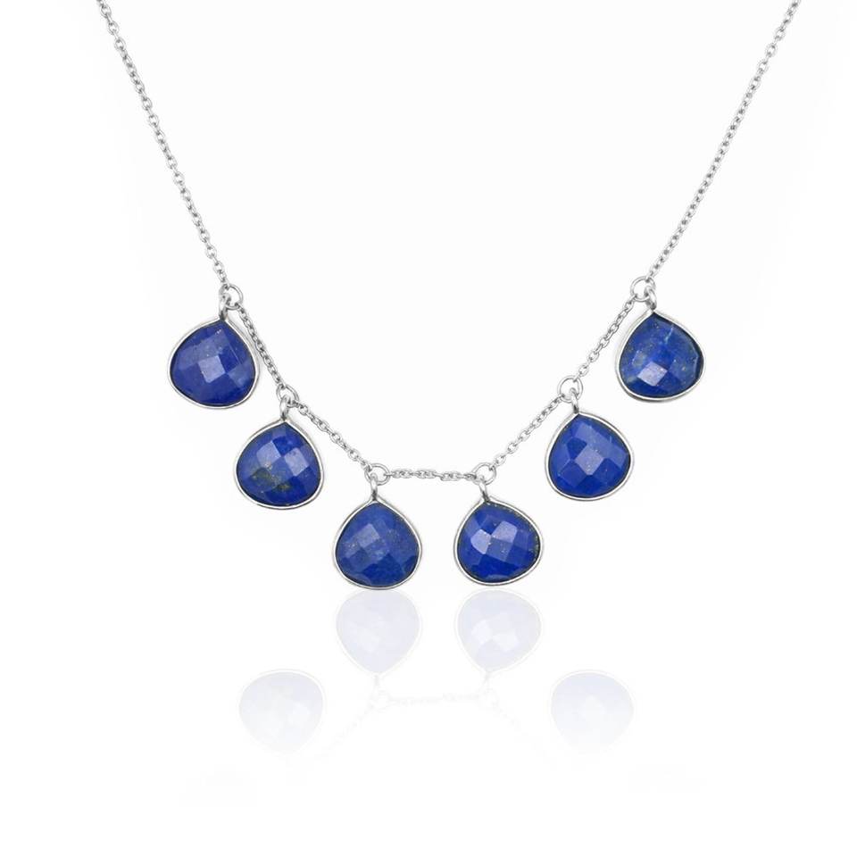 925 Sterling Silver Fine Pendant Necklace with Natural Blue Genuine Lapis Lazuli-Wedding/Anniversary Gift for Her NL0164-GS